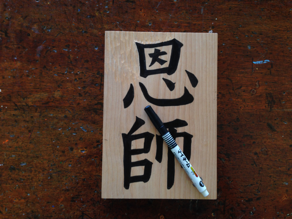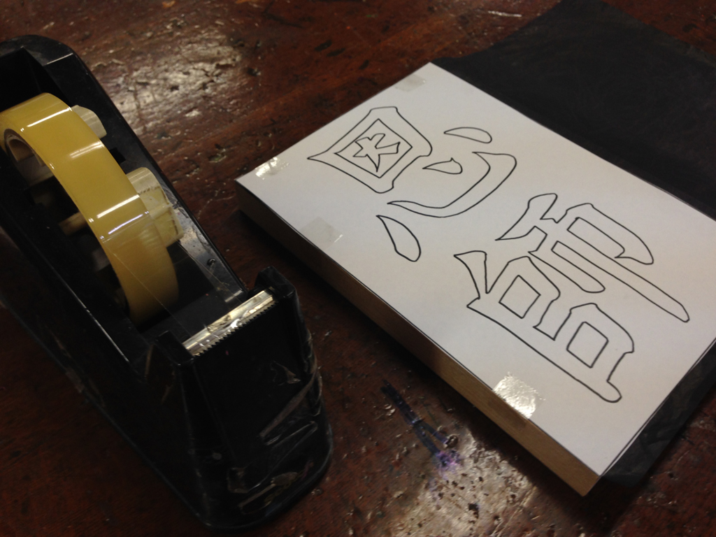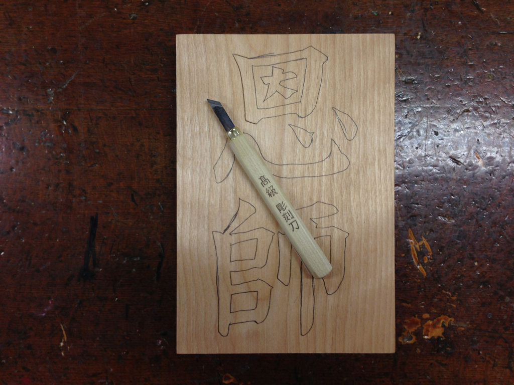 ![]() (8)文字は彫らず、背景を丸刀で彫って仕上げる。 細かな部分は小丸、広い部分は大丸が適切である。 |