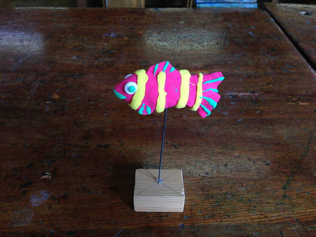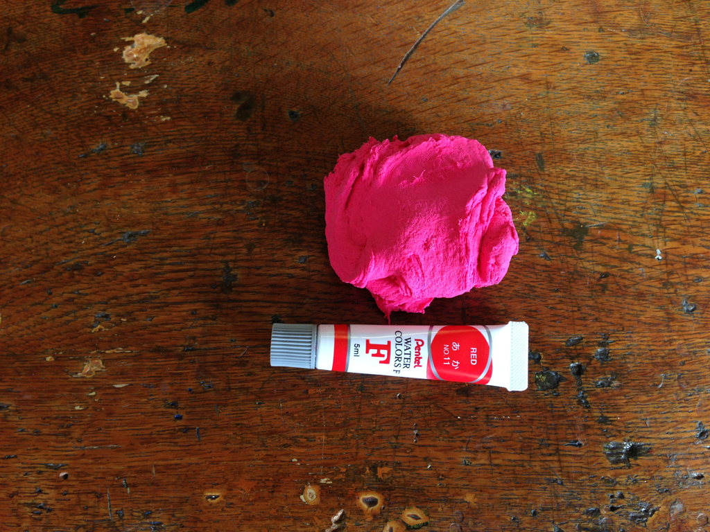 (6)紙ねんどは絵の具で練りこみ、着色する。