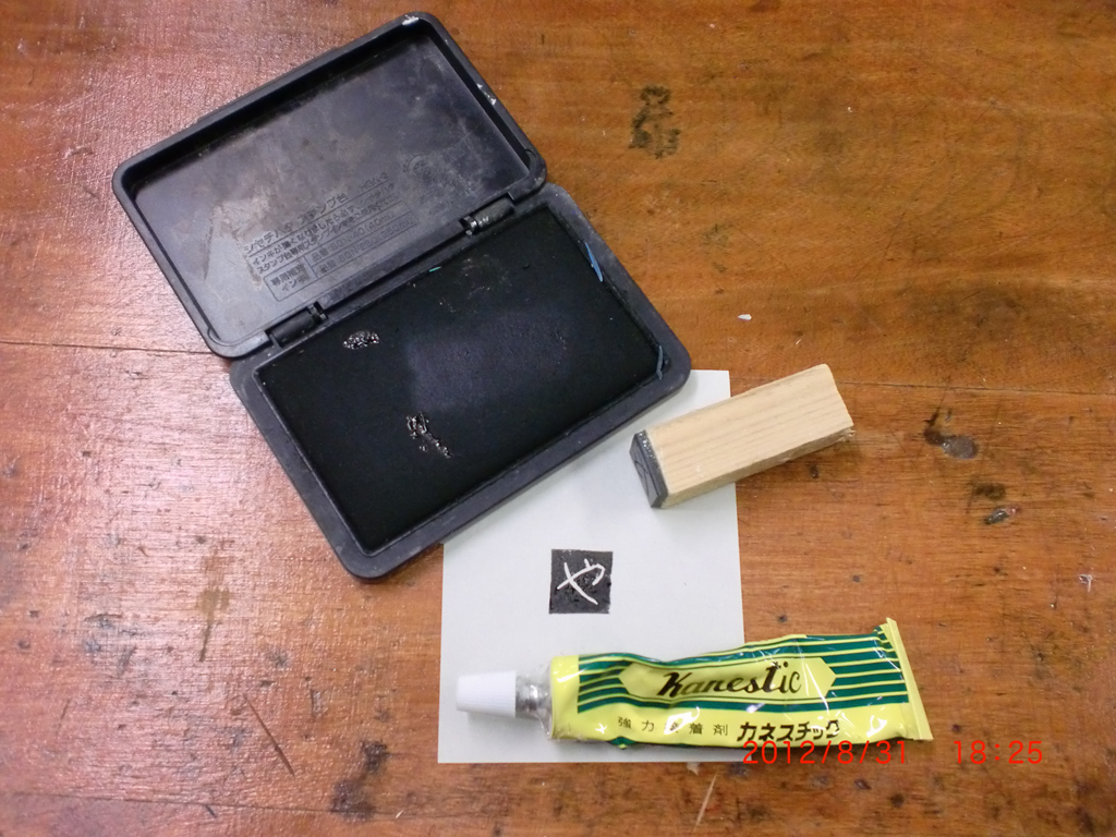 (5)木とゴム版を接着剤でつける。