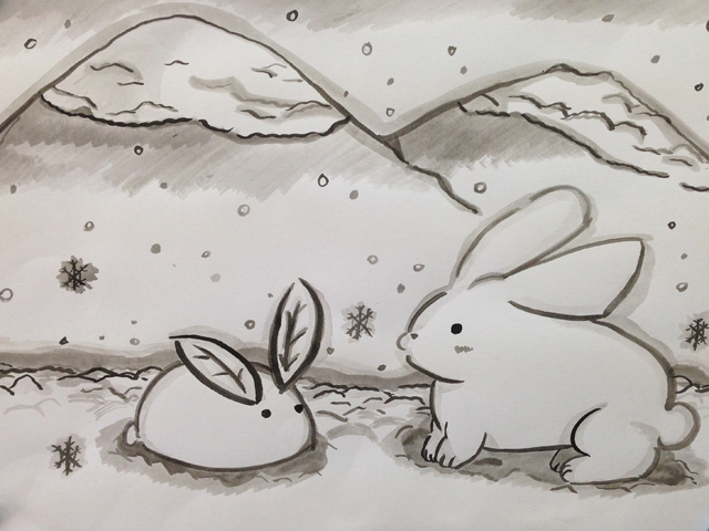めあて:自然の風景や動植物を墨で描く
