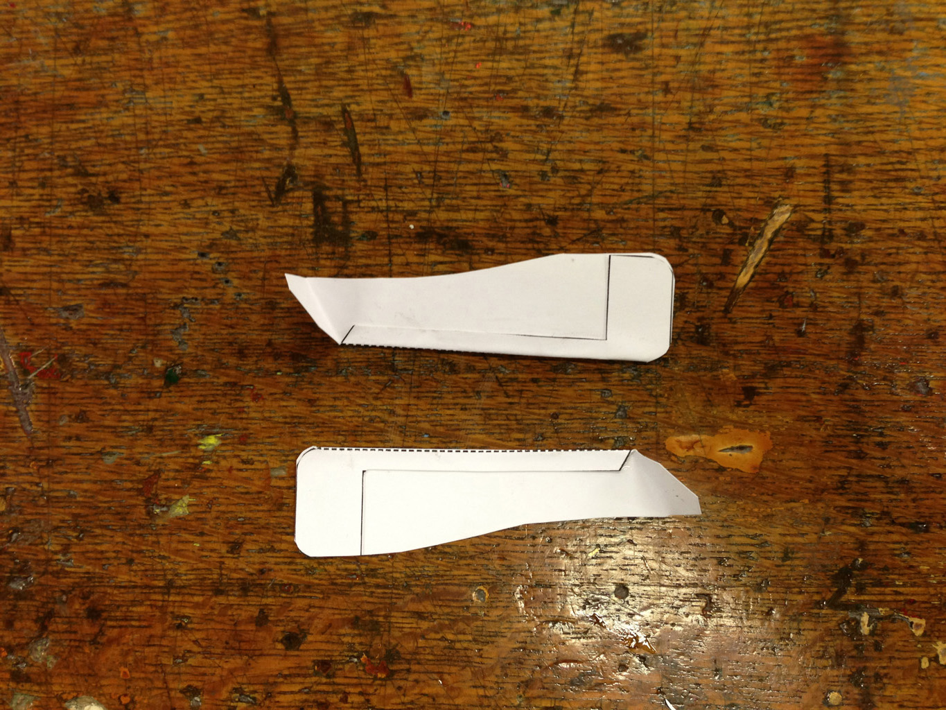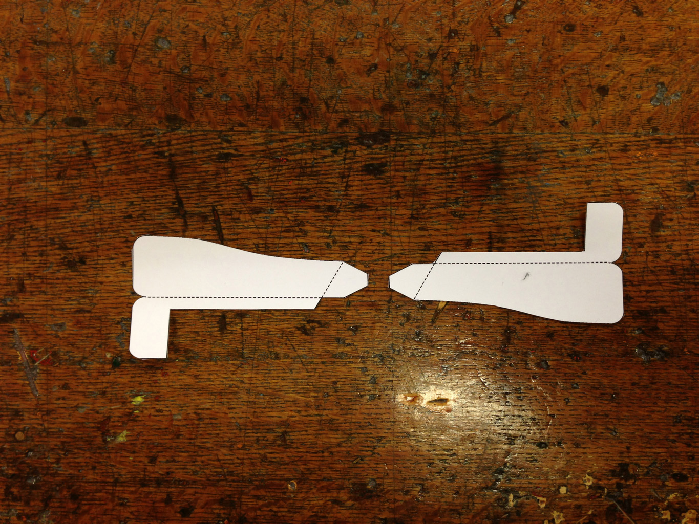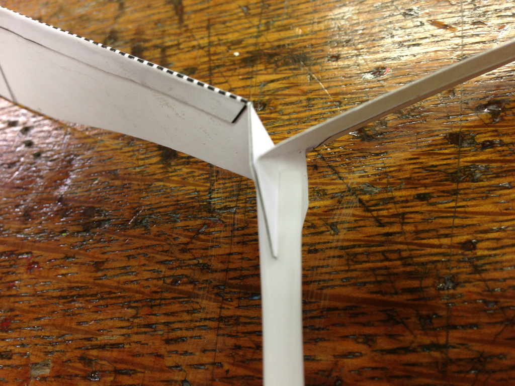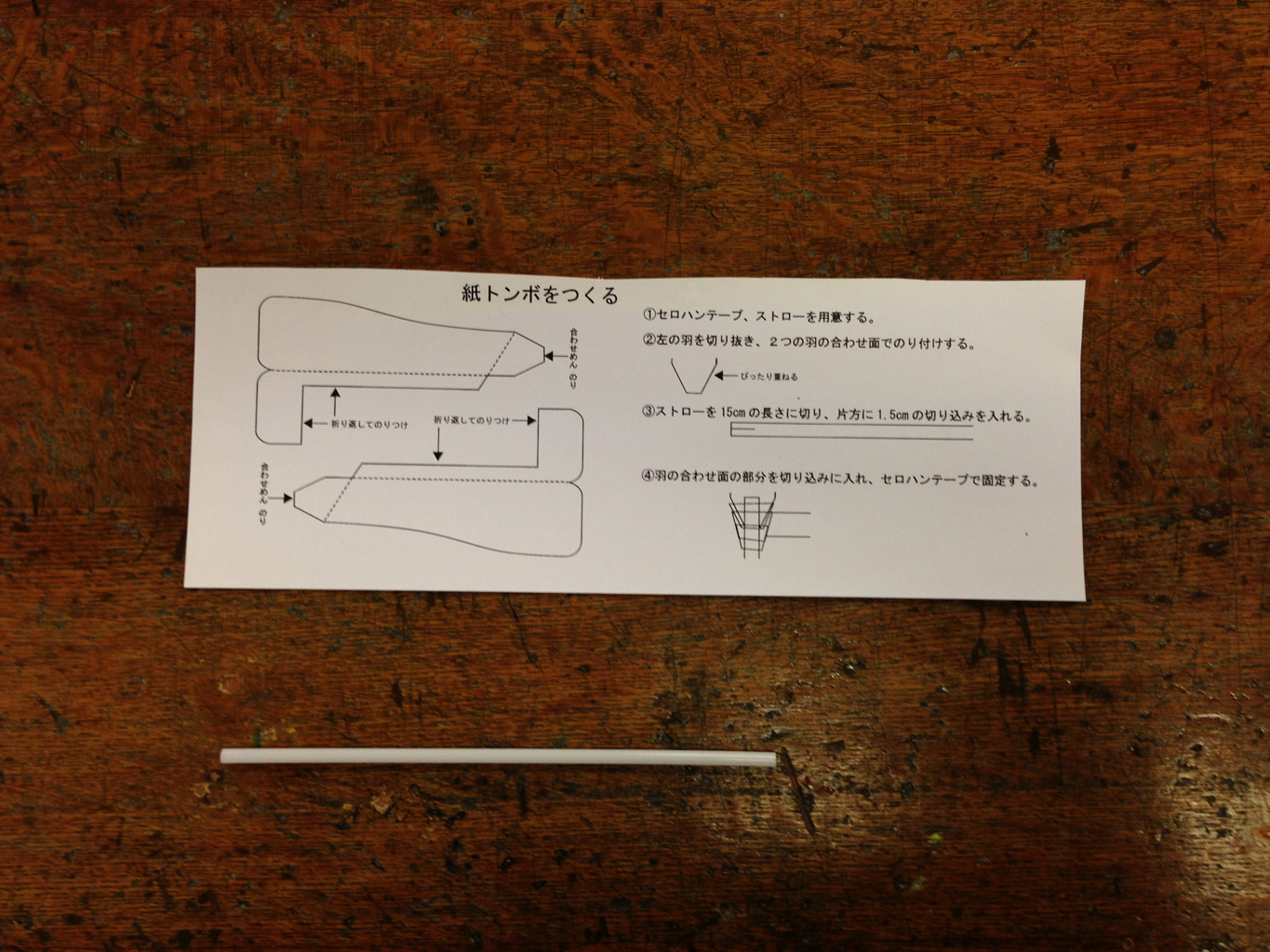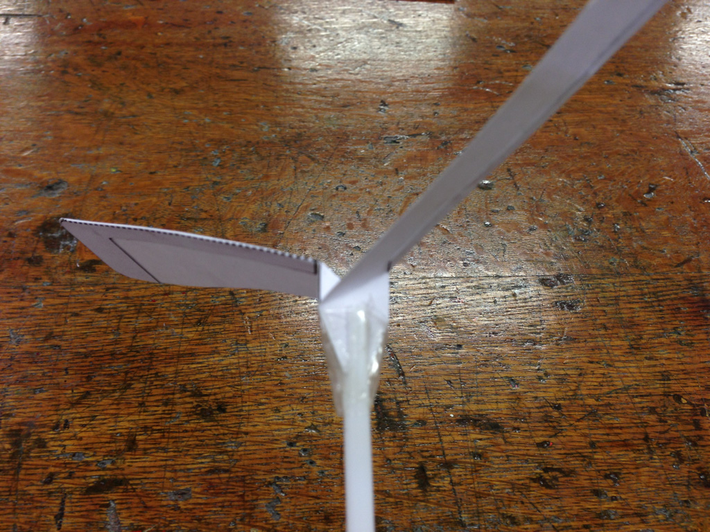 ![]() (4)軸の部分は2枚ピッタリに合わせ、のりづけする。 ここをきちんとしないと飛ばないので注意。 |