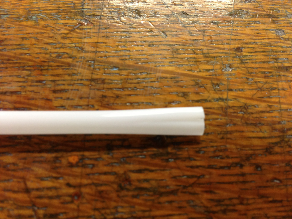 ![]() (6)ストローの先を1.5cmの長さで、はさみで切りこみをいれる。 |
