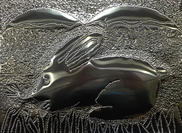 3、主役を浮き出す為に、密に打つ所、疎らに打つ所など工夫して仕上げる